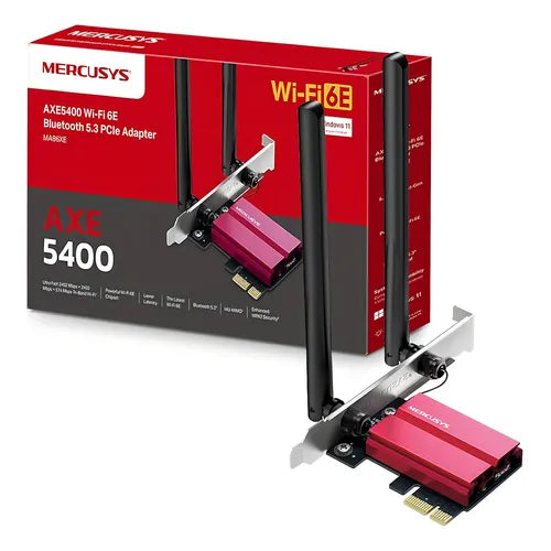 O Adaptador Mercusys MA86XE PCIe AXE5400 Wi-Fi 6E é uma solução de conectividade de alto desempenho para computadores desktop que necessitam de ligação Wi-Fi ultrarrápida e estável. Com suporte para a mais recente tecnologia Wi-Fi 6E, este adaptador permite tirar partido da nova banda de 6 GHz, oferecendo menor latência e maior capacidade de rede.